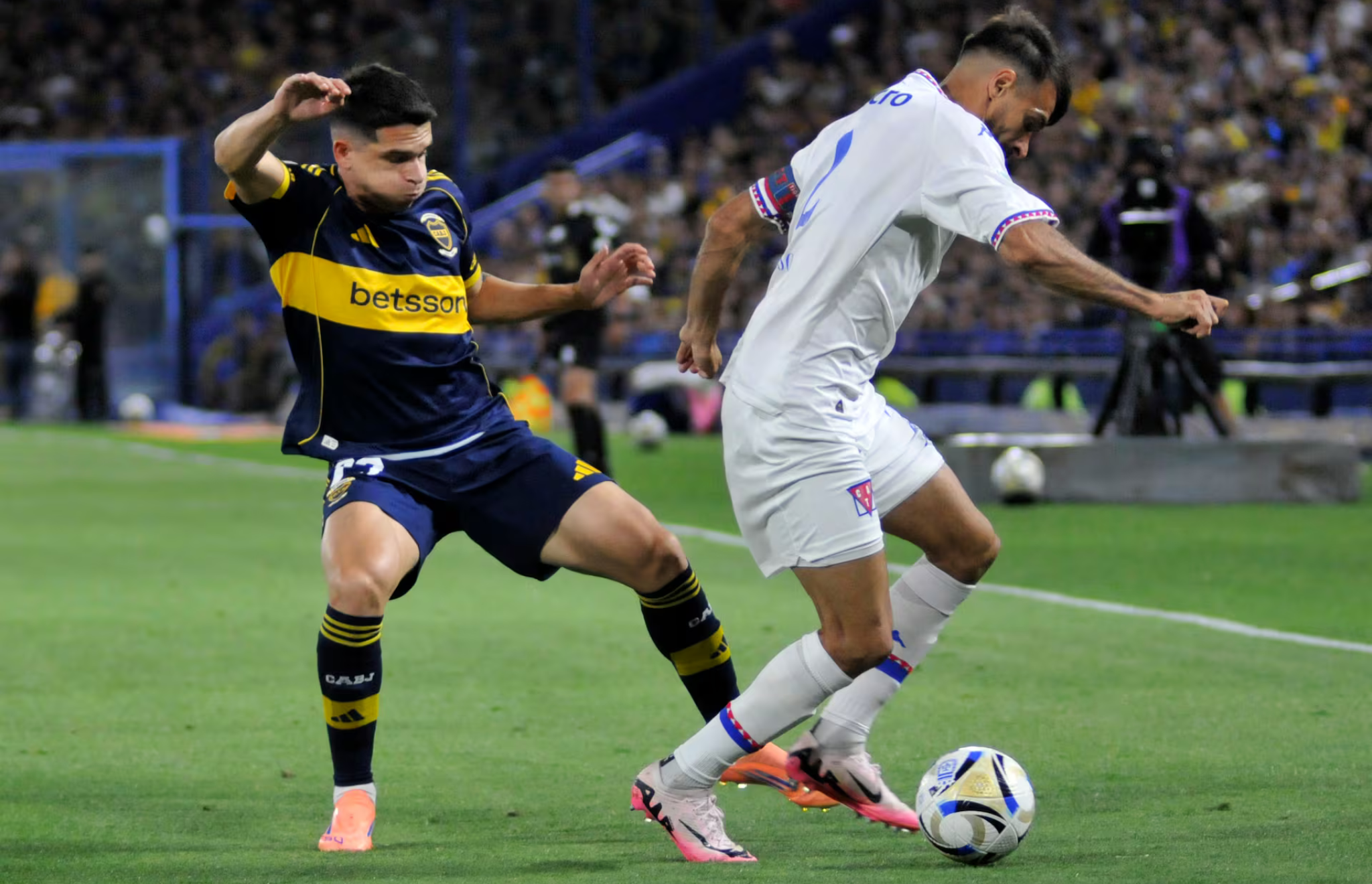Boca no desplegó buen juego durante el primer tiempo, y tampoco tuvo opciones nítidas para convertir. Paredes perdió mucho contacto con la pelota, y el que terminó armando el circuito ofensivo fue el español Herrera. El chileno Palacios no mostraba precisión en la entrega, y tanto Zeballos como Merentiel quedaban desconectados del resto.
