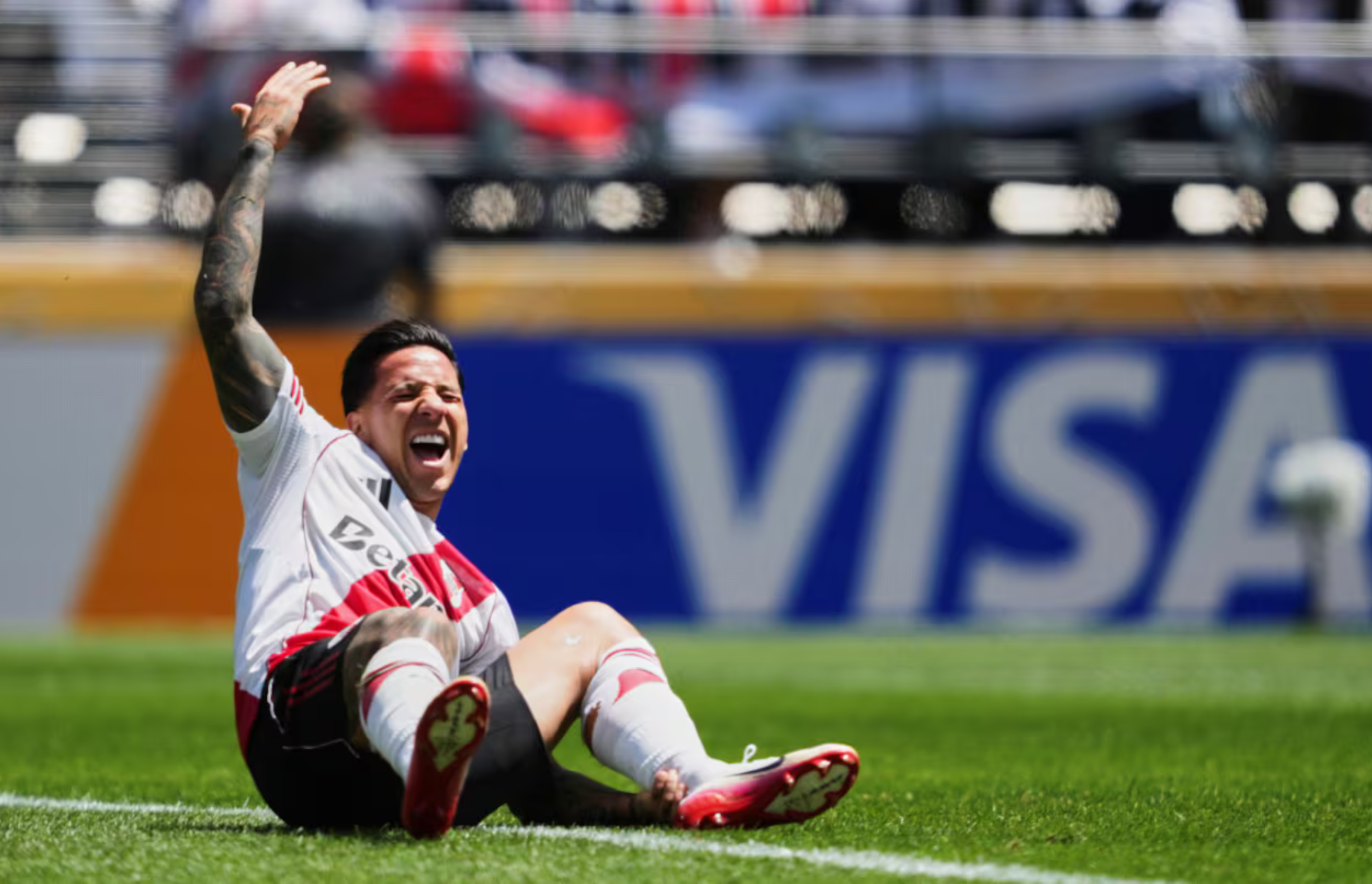 “Me rompí todo”, le dijo el jugador al banco de suplentes de River cuando fue reemplazado por el colombiano Miguel Borja. El delantero dejó el campo de juego sin poder apoyar el pie y con la asistencia de dos colaboradores para caminar.